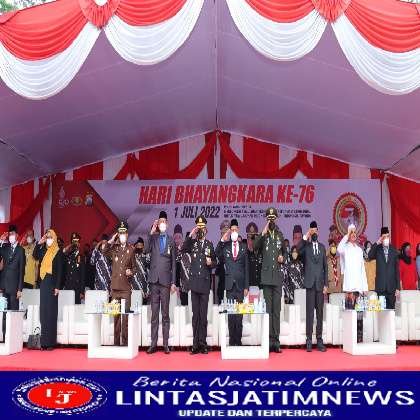 GRESIK lintasjatimnews – Acara puncak HUT Bhayangkara ke-76 digelar secara serentak seluruh jajaran Polda dan Polres baik secara langsung maupun virtual.Polres Gresik pun turut berpartisipasi dalam apel puncak HUT Bhayangkara ke-76 yang digelar pagi ini dan di ikuti Seluruh PJU,Forkopimda,Ketua DPRD,Ketua MUI,Warakauri,Undangan dan sejumlah anggota TNI-Polri mengikuti apel secara virtual. Selasa (5-07-2022).