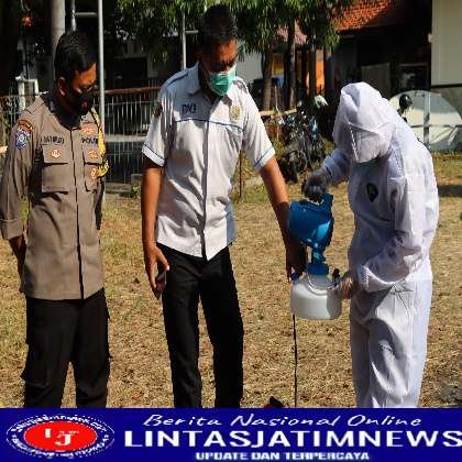 GRESIK lintasjatimnews – Dokkes Polres Gresik melakukan penyemprotan disinfektan di tempat penampungan hewan kurban di Randu Agung, Kecamatan Kebomas, Gresik. Penyemprotan sebagai langkah pencegahan penyebaran penyakit mulut dan kuku (PMK) di Kabupaten Gresik.