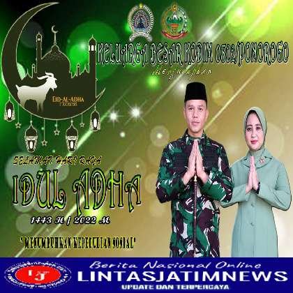 PONOROGO lintasjatimnews – ” Selamat Hari Raya Idul Fitri 1443 Hijriyah tahun 2022 Masehi kepada seluruh anggota Kodim 0802/Ponorogo dan Keluarga Besar Kodim 0802/Ponorogo beserta seluruh masyarakat yang beragama Islam, ” demikian ucapan Komandan Kodim 0802/Ponorogo, Letkol Inf Muhammad Radhi Rusin, S.I.P. pada Hari Raya Idul Adha 1443 H / 2022 M kali ini, Minggu (10/07/2022).