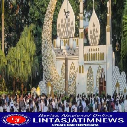 SURABAYA lintasjatimnews – Wali Kota Surabaya Eri Cahyadi bersama istri dan kedua anaknya melaksanakan Salat Idul Adha 1443 Hijriah di Taman Surya, Balai Kota Surabaya, Minggu (10/7/2022). Salat Idul Adha tahun ini kembali digelar Taman Surya usai vakum dua tahun karena pandemi Covid-19.