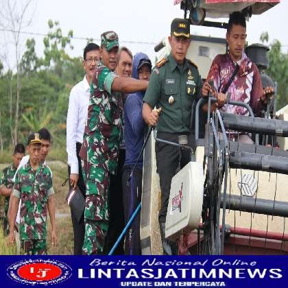 Dandim 0805/Ngawi Dampingi Danrem 081/Dsj Meninjau Panen Padi