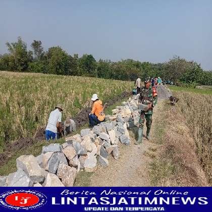 Terkait hal itu, Sertu Agus Riyadi Babinsa Wonorejo anggota Koramil 05/Kedawung Kodim 0725/Sragen bekerja bersama masyarakat membangun talud sepanjang 350 meter di dukuh Kemangi RT 04 desa Wonorejo Kec Kedawung, Selasa (19/07/2022)