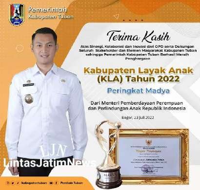 Bupati Tuban Halindra Farizki, SE mengucapkan terima kasih atas sinergi, kolaburasi dan inovasi dari OPD serta dukungan dari seluruh stakeholder dan elemen masyarakat Kabupaten Tuban sehingga Pemerintah Kabupaten Tuban meraih penghargaan Kabupaten Layak Anak (KLA) 2022 peringkat Madya dari Kementrian P3A RI.