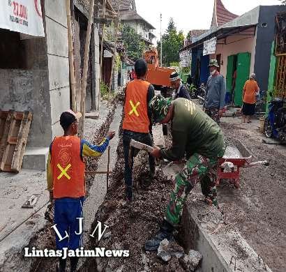 Melalui Program TMMD, Koramil 02/Banjarsari Bersama Warga Gotong Royong Perbaiki Saluran Air