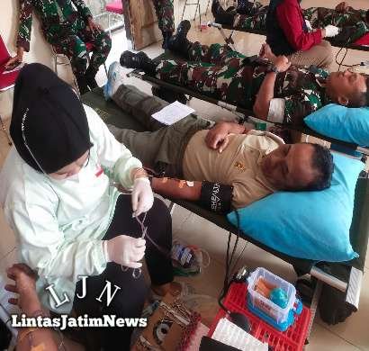 Di Hari Koperasi Ke 75, Anggota Kodim 0805/Ngawi Ikut Bakti Sosial Donor Darah