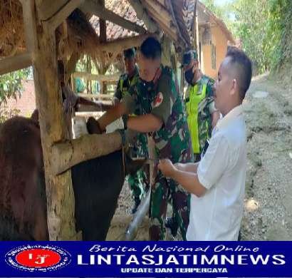 Dalam upaya pencegahan Penyakit Mulut dan Kuku (PMK) serta penyakit menular lainnya, Babinsa Koramil 0801/01 Pacitan, Kodim 0801/Pacitan melakukan pendampingan vaksinasi dari Dinas Ketahanan Pangan dan Pertanian, terhadap hewan ternak bertempat di Desa Tambakrejo Kec. Pacitan Kab. Pacitan, Rabu (3/8/2022).