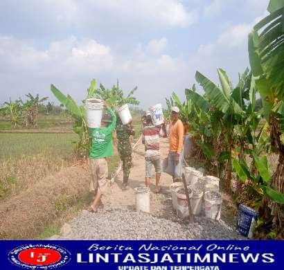 SRAGEN lintasjatimnews – Serda Wahyudi Babinsa Celep Koramil 05/Kedawung Kodim 0725/Sragen bersama warga binaan melakukan kegiatan Karya Bhakti pengecoran jalan setapak menuju sawah di dk Serut Rt 11 Ds Wonorejo Kecamatan Kedawung, Rabu ( 03/08/2022 )