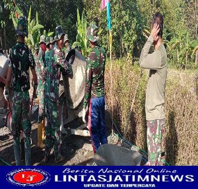 Seperti di pengecoran jalan yang sudah merambah di Desa Jerukan. Begitu jam istirahat habis, TNI dan Satgas langsung memegang sejumlah peralatan, sebagian menghidupkan mesin molen.