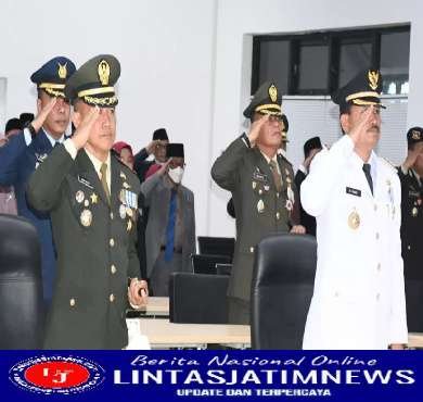 MADIUN llintasjatimnews – Danrem 081/DSJ, Kolonel Inf Deni Rejeki mengikuti kegiatan Peringatan Detik-Detik Proklamasi Kemerdekaan ke-77 Republik Indonesia secara virtual dari Gedung GCIO, Jalan Perintis Kemerdekaan, Kartoharjo, Kota Madiun, Jawa Timur, Rabu (17/8/2022).