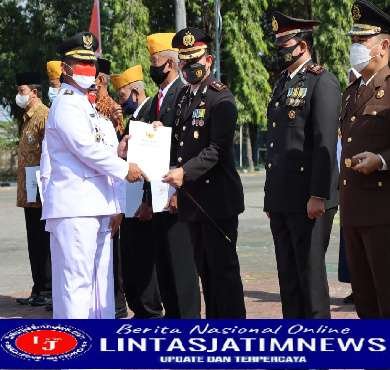 GRESIK lintasjatimnews – Hari ulang tahun kemerdekaan RI ke-77 Kapolres Gresik, AKBP. Mochammad Nur Azis, S.H., S.I.K.,M.Si menerima penghargaan. Alumnus Akpol 2002 diganjar penghargaan atas peran aktif penanggulangan Covid-19 dan penyakit mulut kuku di Kabupaten Gresik.