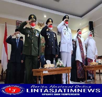 PACITAN lintasjatimnews – Kasdim 0801/Pacitan, Mayor Inf Slamet Riyadi mengikuti kegiatan upacara Detik-Detik Proklamasi dalam rangka memperingati HUT Kemerdekaan Republik Indonesia ke-77, secara virtual bertempat di pendopo kabupaten Pacitan di Jalan JA Suprapto 8 Pacitan, Rabu (17/8/2022).