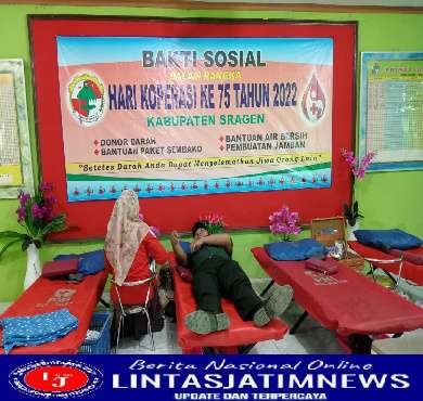 SRAG3N lintasjatimnews – Toleransi, saling menyayangi, berbagi, dan membantu serta tolong menolong terhadap sesama adalah wajib bagi umat manusia. Termasuk donor darah yang kita lakukan. Setetes darah yang kita berikan kepada orang yang membutuhkan bisa berarti menyelamatkan nyawa orang lain. Seperti yang dilakukan Serka Joko Waliman Babinsa DS Bendo beserta Sertu Heryawan Anggota Koramil 13/Sukodono melaksanakan kegiatan Donor darah dalam rangka HUT Korpri ke 75 bertempat di Gedung KPRI Guru Sukodono Kab Sragen, Kamis ( 01/09/2022 )