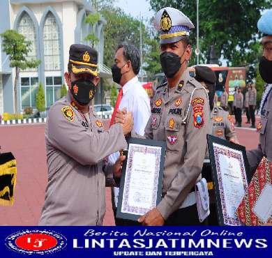 GRESIK lintasjatimnews – Kapolres Gresik AKBP Mochamad Nur Azis memberikan apresiasi kepada 23 personelnya yang berhasil bekerja dengan baik. Penghargaan diberikan langsung saat memimpin apel di halaman Mapolres Gresik. Senin (5-9-2022).