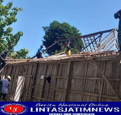 BOYOLALI lintasjatimnews- Koramil 10/Sambi Kodim 0824/Boyolali melaksanakan gotong royong dalam rangka mendukung program Pemerintah tentang bedah rumah tidak layak huni bagi masyarakat yang kurang mampu.