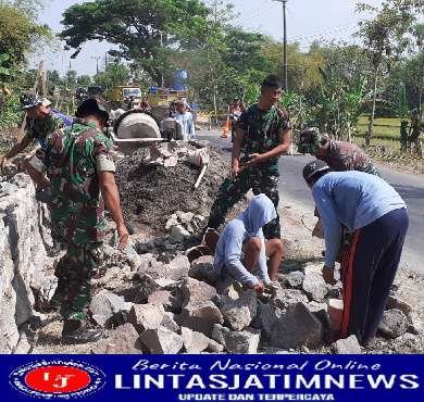 NGAWI lintasjatimnews – Dalam rangka menciptakan kemanunggalan TNI dengan rakyat, anggota Koramil 06/Kwadungan Kodim 0805/Ngawi melaksanakan Karya Bakti membantu masyarakat bangun talud jalan bertempat di Desa Tirak Kecamatan Kwadungan,Kamis (06/10/2022).