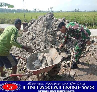 SRAGEN lintasjatimnews – Dalam rangka memperkuat betonisasi jalan yang sudah selesai dikerjakan, Sertu Indrawan Babinsa Ds.denanyar Koramil 10/Tangen Kodim 0725/Sragen dan masyarakat memperkuat jalan agar tidak mudah pecah pinggirnya dengan cara memberem kanan dan kiri jalan agar tambah kuat dan lebih lebar, Rabu (12/10/2022).