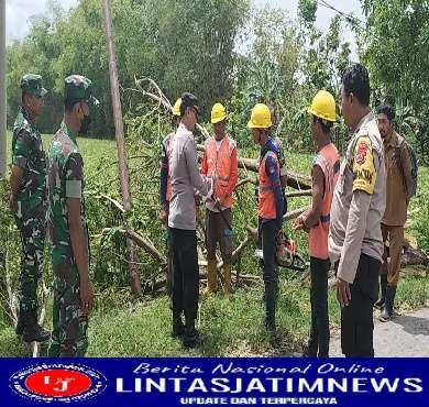 NGAWI lintasjatimnews – Personil Posramil Kasreman Kodim 0805 Ngawi menggelar kerja bakti untuk mengevakuasi pohon tumbang akibat diterjang angin puting beliung yang terjadi Senin sore di sepanjang jalur utama desa Karang malang kecamatan Kasreman, Kabupaten Ngawi. Rabu (12/10/2022 )