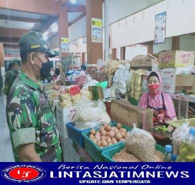 SURAKARTA lintasjatimnews – Babinsa Kelurahan Pasarkliwon Koramil 05 / Pasarkliwon Kodim 0735 / Surakarta Serka Suwarno melaksanakan himbauan protokol kesehatan kepada masyarakat dan pedagang di pasar tradisional gading Kelurahan Pasar Kliwon kecamatan Pasar kliwon, Minggu (16/10/2022).