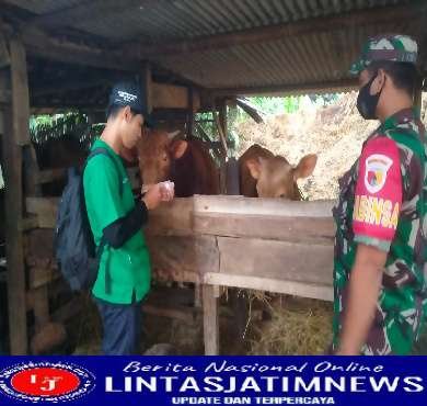 Sertu Mustofa mengatakan bahwa pendampingan kegiatan vaksinasi ini bertujuan agar kegiatan berjalan aman dan lancar serta memonitor perkembangan tentang penyebaran wabah Penyakit Kuku dan Mulut pada hewan ternak (sapi) di Desa Binaan masing-masing.