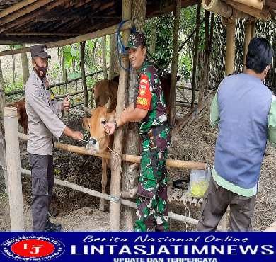 Optimalisasi Penanganan PMK, Babinsa Dampingi Pemasangan Eartag Digital Hewan Ternak