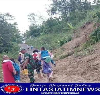 Tanggap Bencana, Babinsa Bantu Evakuasi Tanah Longsor