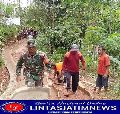 PACITAN lintasjatimnews – Kali ini dalam rangka mempererat kemanunggalan TNI dengan rakyat, Kodim 0801/Pacitan, melaksanakan program karya bakti semester II tahun 2022, berupa pengecoran jalan yang berada di Dusun Kasri Desa Kertoharjo Kec. Tulakan Kab. Pacitan, Senin (14/11/2022).