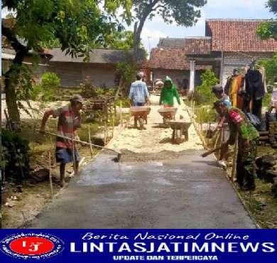 Babinsa Desa Banjargondang Serda Didik anggota Koramil 0812/07 Bluluk kembali berkontribusi untuk masyarakat dengan melakukan kegiatan Karya Bakti pembangunan jalan rabat beton bantu akses warga di Desa Banjargondang Kecamatan Bluluk
