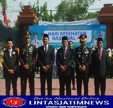 LAMONGAN lintasjatimnews – Komandan Kodim 0812/Lamongan, Letkol Kav Endi Siswanto Yusuf menghadiri upacara dalam rangka memperingati Hari Kesehatan Nasional (HKN) Ke-58 yang dilaksanakan di halaman Pemkab Kabupaten Lamongan.