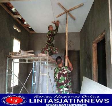 “Hari ini kita lanjutkan pengacian diding terutama dinding yang berada di luar rumah, pemasangan geting telah selsai kini kami juga fokus melaksanakan pemasangan plafon” ungkap Danramil 05 Weru Kapten Inf Sumardi.