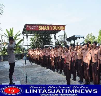 GRESIK lintasjatimnews – Maraknya kasus kekerasan yang dilakukan sekelompok orang dan beredar di Medsos atau lebih sering dikenal sebagai gangster, Polsek Dukun Polres Gresik melaksanakan penyuluhan dengan cara hadir ke sekolah-sekolah dengan mengikuti upacara. Hal tersebut dilakukan demi menjaga kondusifitas wilayahnya mengantisipasi para pelajar masuk dalam gangster yang merugikan orang lain.