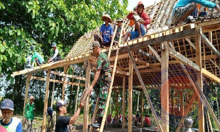 NGAWI lintasjatimnews.com – Koramil 0805/07 Ngrambe Kodim 0805/Ngawi telah melaksanakan kegiatan karya bakti membantu pembangunan rumah warga di desa Pucangan Kecamatan Ngrambe, Kabupaten Ngawi, Selasa (20/12/2022).