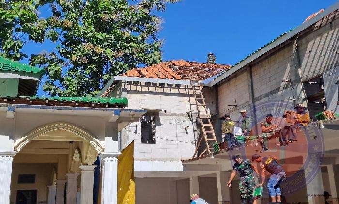 Karya bakti bersama masyarakat yang dipimpin Danramil Tipe B 0802/20 Jambon, Kapten Inf Agus yudho Bintoro tersebut yaitu menaikkan dan memasang atap/genting di lantai 2 Pondok Putri Tahfidzul Qur’an Pring Sewu.