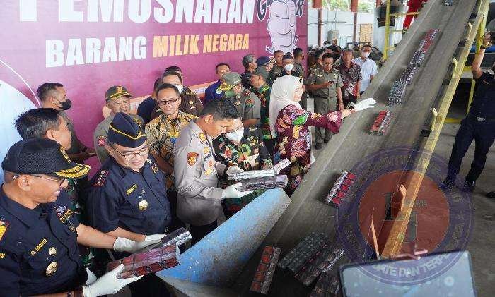 Hasil Operasi Gabungan Polres Batu, Dua Juta Rokok Ilegal Dimusnahkan