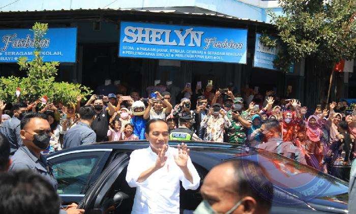 Di pasar Rejoso, Presiden RI dan istri melaksanakan peninjauan pasar dan memberikan bantuan bingkisan sembako kepada pedagang kaki lima dan tukang becak.