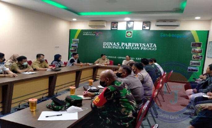 Rapat dipimpin oleh Kepala Dinas Pariwisata Kulon Progo Bapak Joko Mursito, S.Sn., M.A., dihadiri Pejabat dari Satpol PP dan Dishub Kulon Progo, Forkopimkap Temon, Kokap, Galur dan Samigaluh serta Petugas TPR Obyek Wisata Pantai Glagah dan Bendungan Waduk Sermo.