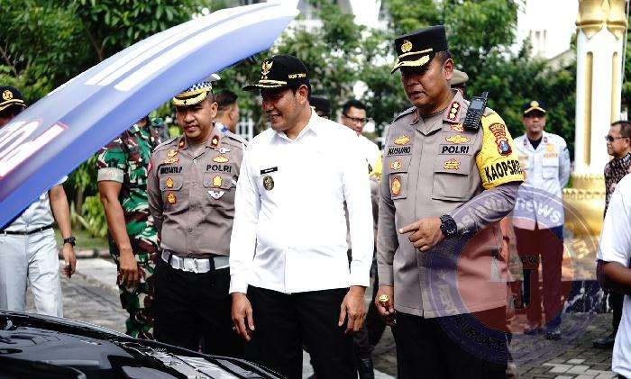 Untuk mengetahui kesiapan pengamanan Natal dan Tahun Baru 2023, Wakil Bupati Sidoarjo H. Subandi dan jajaran Forkopimda Sidoarjo mengecek kendaraan bermotor serta kesiapan personel.