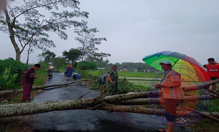 Mendapati laporan dari warga tentang kejadian tersebut, Sertu Haryanto Babinsa Desa Sendangmulyo Koramil 14/Minggir Kodim 0732/Sleman langsung mendatangi lokasi bersama warga dan Relawan Pegasus Minggir,dan dengan sigap langsung melakukan pemotongan pohon dan membersihkan lokasi dari sisa-sisa pohon tumbang yang menutupi ruas jalan yang sempat menghambat arus lalu lintas.