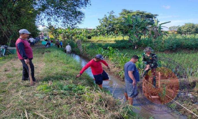Bersihakan Saluran Irigasi, Babinsa Koramil 02 Nguter Bantu Darga Desa Tanjung Tingkatkan Hasil Pertanian