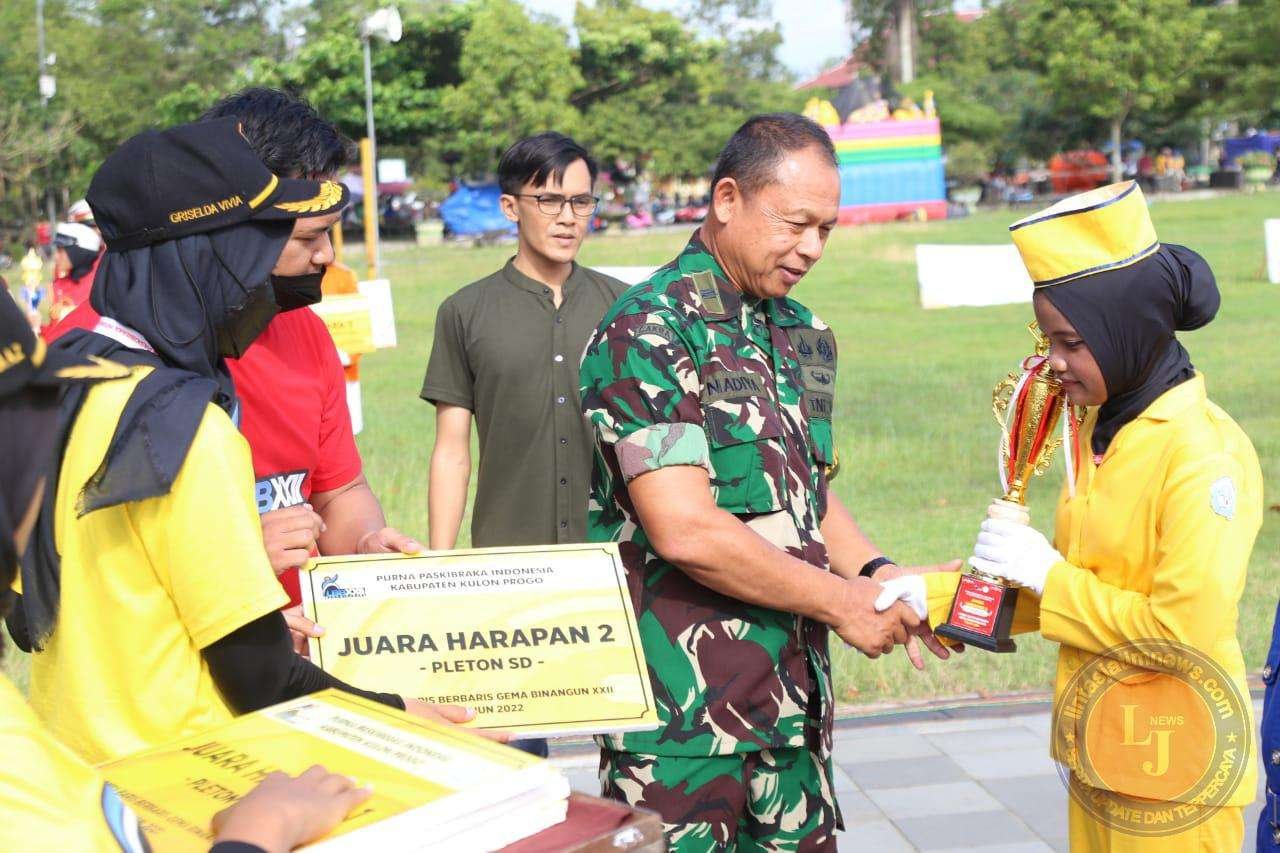 Lettu Inf Nadiya Danramil 04/Samigaluh dan Peltu Agus Riyanto Bati Ops Kodim 0731/Kulon Progo, menghadiri acara Penutupan Lomba Baris Berbaris Gema Binangun Ke-XVII Tahun 2022, yang berlangsungh di Alun-Alun Wates, 25/12/2022