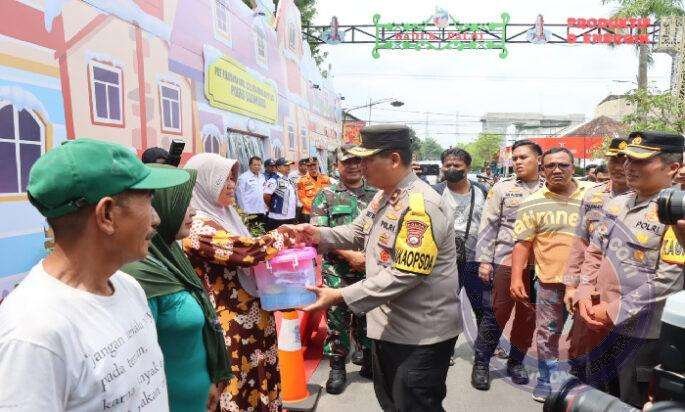 Brigjen Pol Slamet Hadi Supraptoyo menyerahkan bingkisan secara simbolis kepada personel Pos Yan Ops. Lilin Semeru 2022 dan juga mengecek gerai vaksinasi Presisi di Pos Yan.