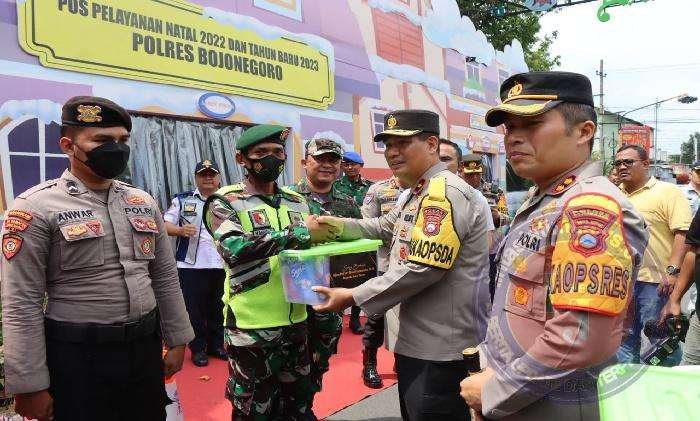 BOJONEGORO lintasjatimnews.com – Waka Polda Jatim, Brigjen Pol Slamet Hadi Supraptoyo, didampingi Pejabat Utama (PJU) Polda Jatim, Rabu (28/12/2022) pagi, meninjau Pos Pelayanan (Pos Yan) Natal 2022 dan Tahun Baru 2023 Polres Bojonegoro, yang bertempat di jalan Mastumapel Kecamatan Kota Bojonegoro.