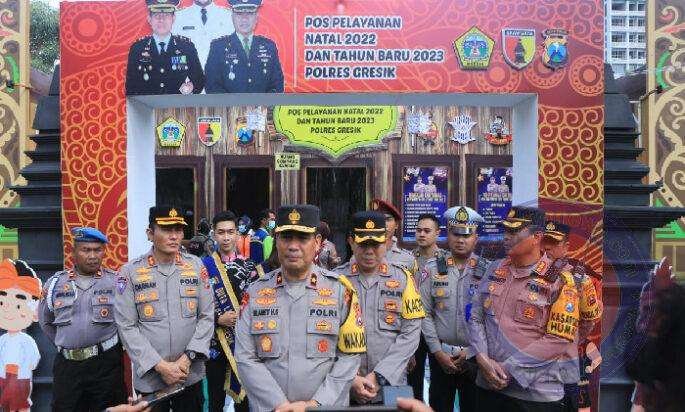 GRESIK lintasjatimnews.com – Waka Polda Jatim, Brigjen Pol Slamet Hadi Supraptoyo, didampingi Pejabat Utama (PJU) Polda Jatim, Rabu (28/12/2022) pagi, meninjau Pos Pelayanan Natal 2022 dan Tahun Baru 2023 Polres Gresik, yang bertempat di Icon Mall, Kabupaten Gresik.