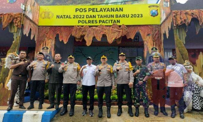 PACITAN lintasjatimnews.com – Dalam rangkaian untuk meninjau pengamanan Natal 2022 dan Tahun Baru 2023 (Natura) di berbagai wilayah Jatim, Kombes Pol Mohamad Aris, S.H., S.I.K., M. Si (Irwasda Polda Jatim) bersama rombongan melakukan kunjugan kerja di wilayah Kab. Pacitan, Rabu (28/12/2022).