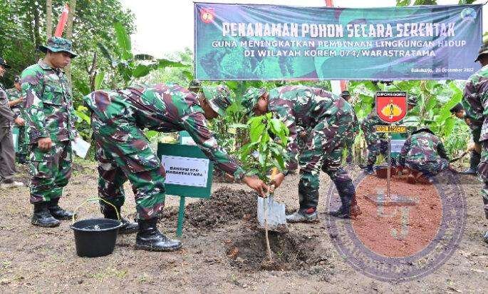 Penanaman pohon Secara Serentak di Kodim 0726/Sukoharjo berjumlah 3500 pohon, hari ini 700 pohon segera ditanam di 5 (lima) lokasi yaitu dimulai dari Ds. Parangjoro Kec. Grogol, Ds. Langenharjo Kec. Grogol, Ds. Kadokan Kec. Grogol, Kelurahan Bulakan Kec. Sukoharjo Kab. Sukoharjo serta di Dk. Japanan, Ds. Palur Kec. Mojolaban yang kesemuanya berlokasi di sepanjang bantara sungai Bengawan Solo.