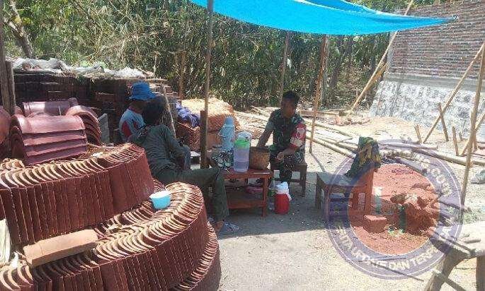 Kali ini Babinsa Koramil 0805/15 Karanganyar Serda Budiyanto mengunjungi pekerja perbaikan rumah milik Bapak Sugeng di Desa Pandean Kec. Karanganyar Kabupaten Ngawi, Jumat (30/12/2022).