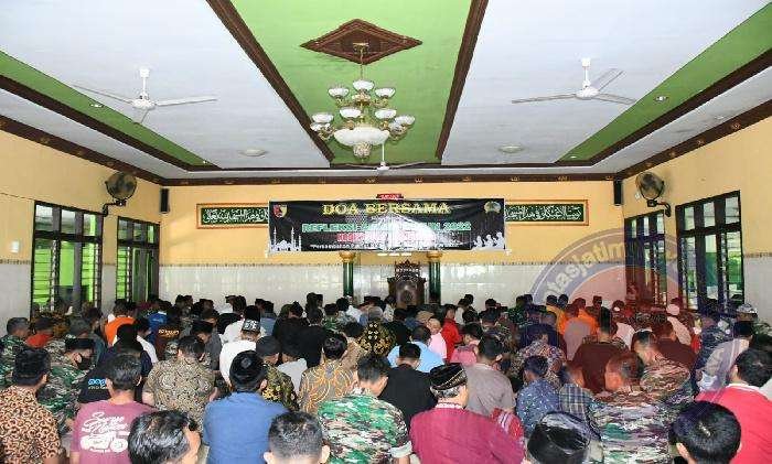 PONOROGO lintasjatimnews.com – Kodim 0802/Ponorogo hari ini menggelar kegiatan doa bersama refleksi akhir tahun 2022 persembahan ” Patriot NKRI Untuk Rakyat Bermartabat ” bertempat di Masjid Al Muttahida Kodim 0802/Ponorogo, Jumat (30/12/2022).