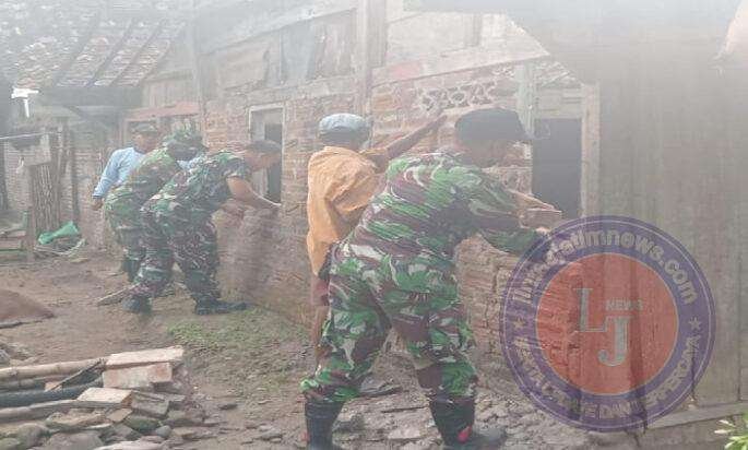 Anggota Koramil Kedunggalar Bantu Warga Rehab Rumah