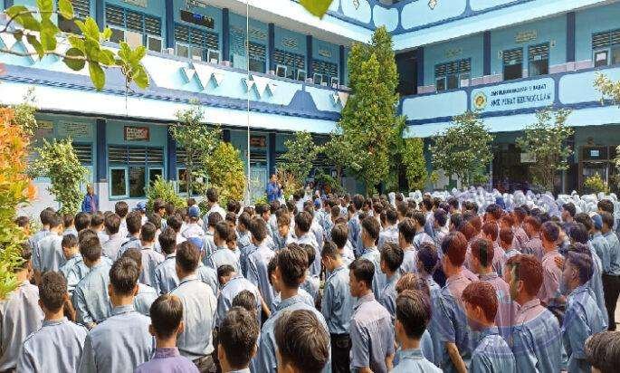 LAMONGAN lintasjatimnews – SMK Muhammadiyah 5 Babat (Muhlibat) Lamongan melaksanakan apel pagi.
