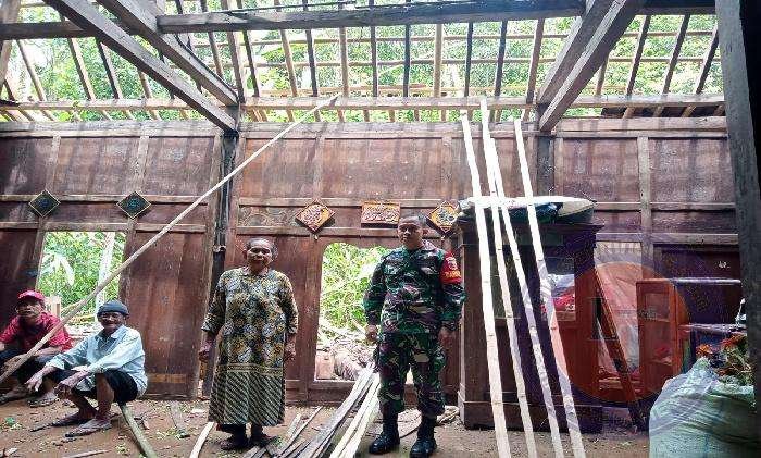 Manunggal Bersama Rakyat, Babinsa 0801/06 Bandar Bantu Warga Perbaiki Rumah Warga