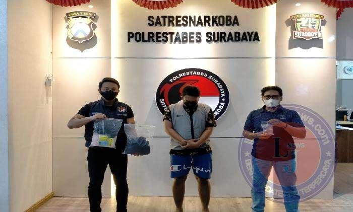 Akibat perbuatannya, tersangka ditahan di Mapolrestabes Surabaya. Dia akan dijerat Pasal 114 ayat (1) dan Pasal 112 ayat (1) UU RI No. 35 tahun 2009 tentang Narkotika.